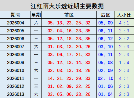 上期回顾:大乐透上期开奖奖号:03 05 06 23 26,后区01 04。前区号码大小比为2:3。